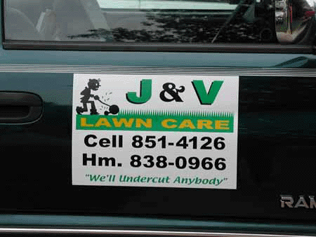 Magnetic signs are available from 24 inches hight to whatever length needed. These signs are mainly used for trucks or vans and can easily be removed. We can supply with these signs with vinyl or digitally printed image. Standard color backrounds are white, black, red, blue, green with a wide choice of vinyl colors for the lettering.