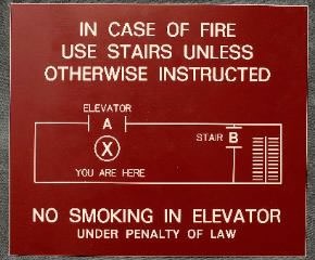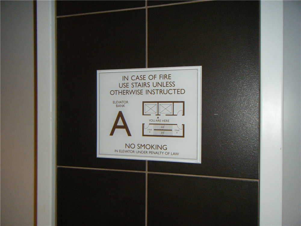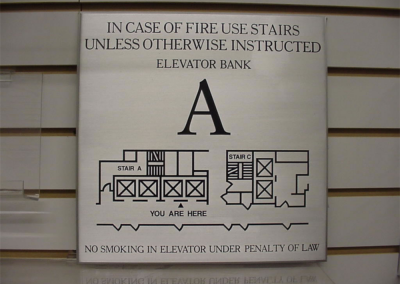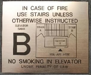 Evacuation Signs Evacuation Signs Have A Diagram Of The Floor Indicating Elevator, Stairs and Exits. They All Have You Are Here, Indicating Your Exact Location. Normal Size Are 10 X 12 Or 12 X 12. These Signs Can Be Made Of Plastic Or Metals With Engraving Or Silk Screening.You Will Need To Provide Us With A Small Simple Sketch On Paper For Us To Setup Your Floor Plan.You May Also Supply A File.We Can Provide A Proof For Your Approval Prior To Production.